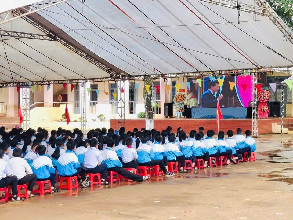 Trong không khí trang nghiêm, ấm áp của ngày hội toàn dân đưa trẻ đến trường, học sinh nhà trường được lắng nghe những lời động viên, căn dặn từ lãnh đạo ngành Giáo dục, thêm quyết tâm rèn luyện, học tập thật tốt.